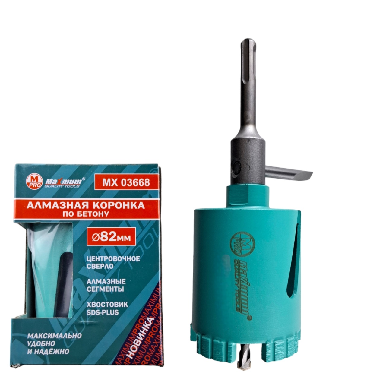 Алмазная коронка для бетона 82 мм от «Maximum Quality Tools» позволяет работать только в безударном режиме с перфоратором или дрелью. Толщина твердосплавных зубьев 4,5 мм. Глубина коронки 80 мм. Сверло 100 мм.