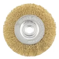 Корщетка латунированная 150 мм предназначена для УШМ и применяется для грубой очистки металлических поверхностей от ржавчины, грязи, удаления лакокрасочных покрытий и зачистки сварных швов. Плоская форма позволяет вести обработку в углах, изгибах и других труднодоступных местах.